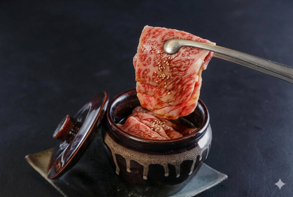 タレの香ばしい香りが立ち上る、食欲を刺激する贅沢焼きすき。